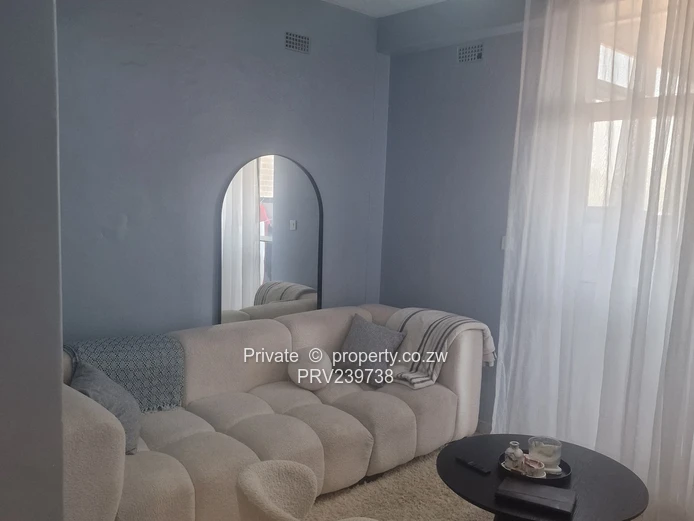 Neat and recently renovated 1-bedroom flat located in Harare CBD. Features a comfortable lounge, fitted kitchen, bedroom with built-in cupboards, bathroom, and a private balcony.