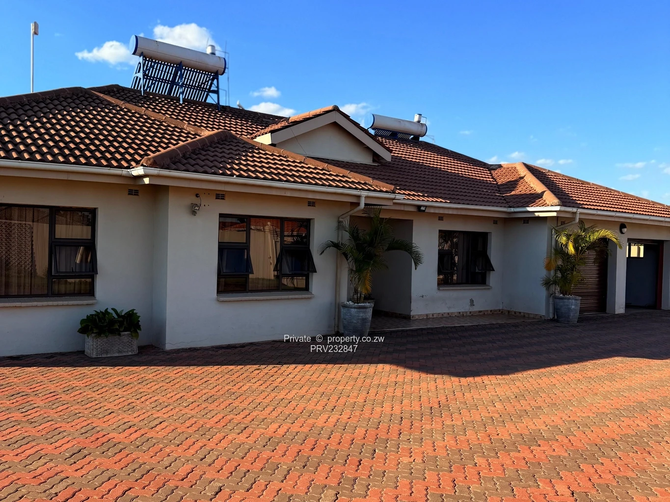 The property is fully serviced and self-sufficient, offering a solar-powered lifestyle with borehole water access — ideal for modern living in Zimbabwe.