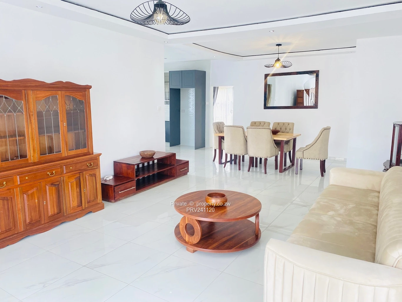 On offer is this beautifully finished and well-maintained modern home, ideal for families, professionals looking for a ready-to-occupy property. The house features a spacious open-plan lounge and dining area with polished tiled floors, modern ceiling finishes, and stylish light fittings that create a warm and inviting living space.